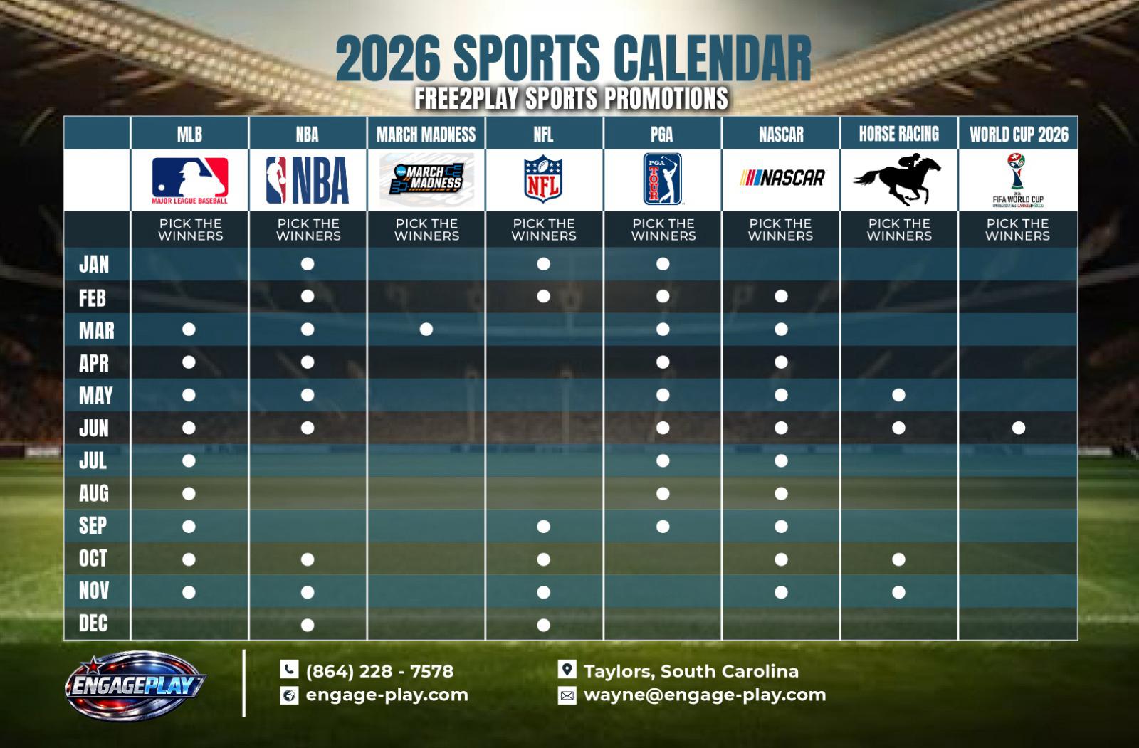 Since 2011, Engage Play™ has been the only company in the industry offering free to play promotional games for every sport, providing a unique service that distinguishes you from your competitors.